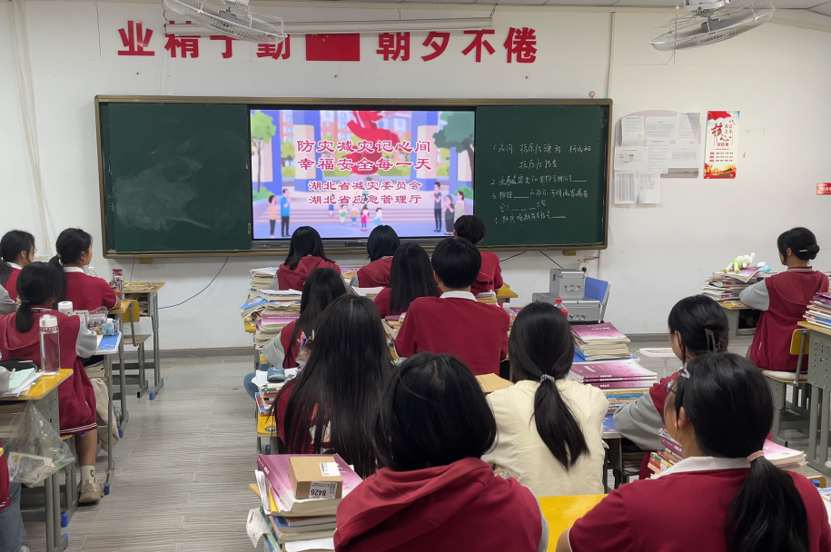 我校专门组织全校师生在班会时间观看了教育系统防灾减灾视频。让全体师生了解校园面对紧急情况时应急疏散演练示范要求,学习自救逃生常识,营造“防灾减灾·师生行动”的宣传氛围。