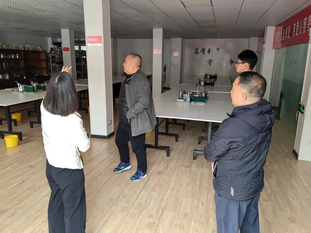 职成科谢科长一行在余校长等同志陪同下参观学校校园、教学楼、实训室、食堂,深入了解学校安全、教育教学、食堂建设等工作情况。