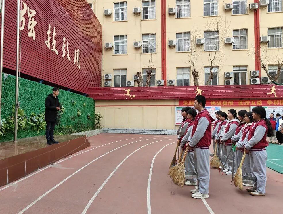 党支部王孟雄书记首先与大家一起回顾了雷锋精神的由来。雷锋留给我们的不是惊天动地的壮举,而是“甘做螺丝钉”的坚持。接着介绍了我们身边的“雷锋”,他们是认真清扫校园的同学,风雨无阻默默站岗的学生干部,深夜巡查校园的安保人员,清理生活垃圾的保洁阿姨,关心呵护同学们的老师,嘘寒问暖的宿管阿姨……他们都完美诠释了“螺丝钉精神”。“此刻站在操场上的每一位,都是雷锋精神的‘传承者’,今天,我们要把这种坚持传承下去,将雷锋精神发扬光大。”