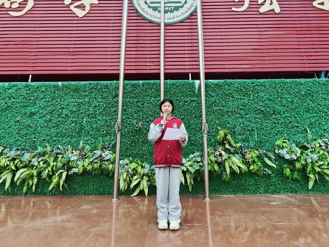 2025年3月5日清晨,湖北现代科技学校全体师生肃立,注视着五星红旗。学生代表以“雷锋精神,永不褪色的光芒”为主题发言,呼吁全体同学不忘“雷锋精神”积极参与志愿服务活动。
