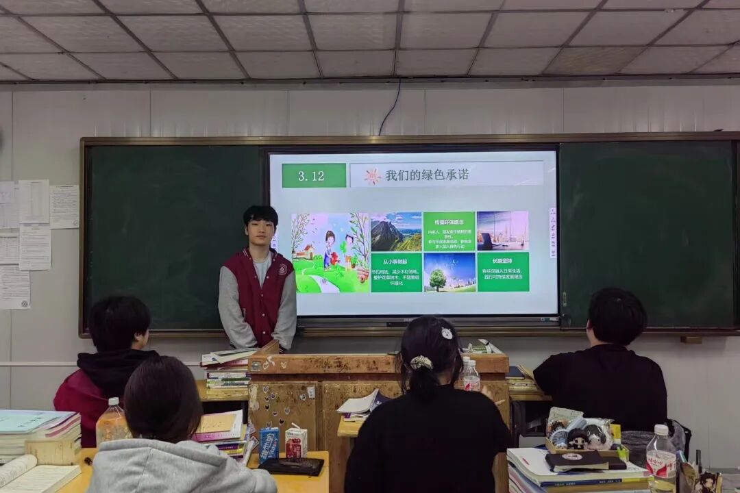 各班围绕 "树木与生态平衡"" 碳中和与低碳生活 "等主题开展班会,通过PPT展示、纪录片赏析等形式,将生态教育融入日常教学。