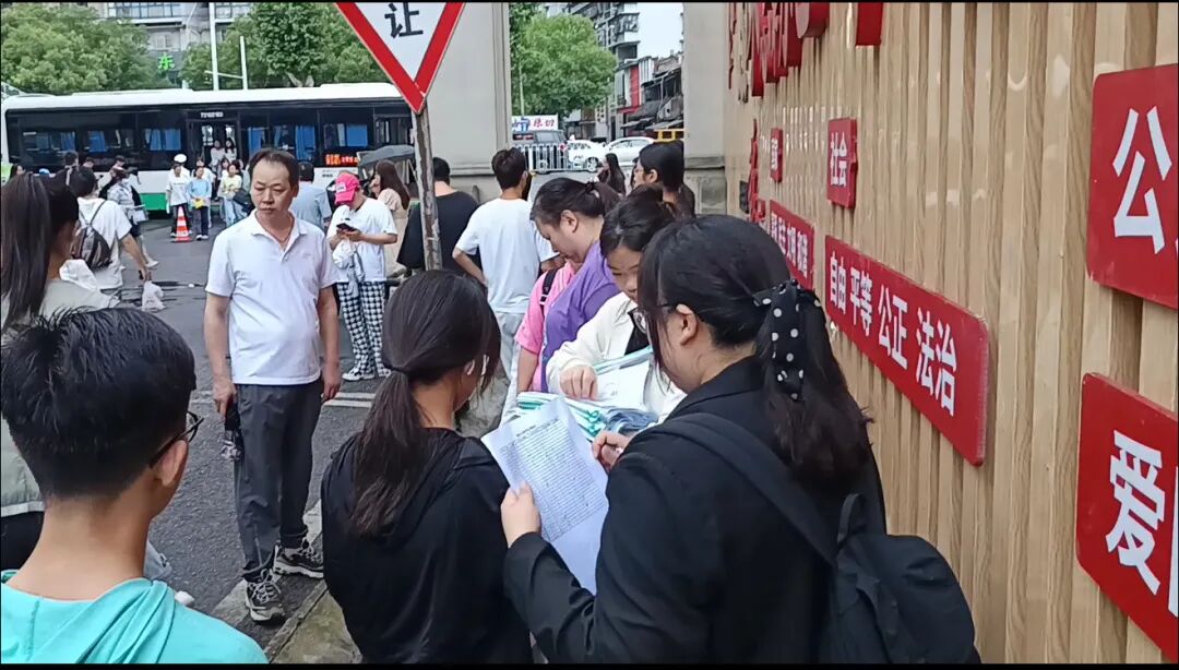 同学们陆续抵达考场时,老师们提醒着考试的注意事项,同学们认真地聆听,眼神中透露出紧张与期待。瓢泼的大雨没有浇灭同学们激动的心情,大家互相打气,迈入考场的大门。
